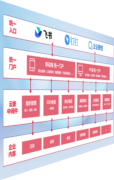 对协作平台提供支持服务,,,支持企业应用与协作平台对接,,,,包含组织同步、、消息集成、、、待办集成等。。支持目前主流的协作平台:钉钉、、、企微和飞书。。